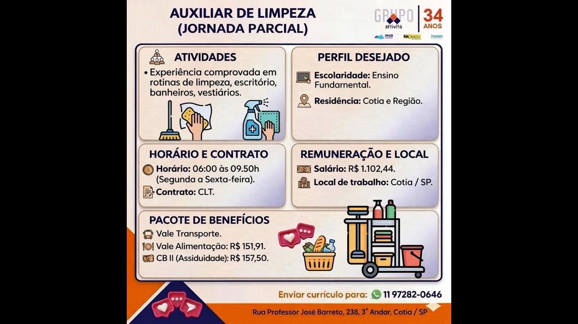 Auxiliar de Limpeza (Jornada Parcial)